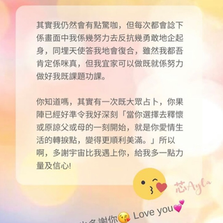 療癒後,她的確變得勇敢,並且能夠正面面對問題。今次療癒故事我很用心寫,因為內容夾雜了很多智慧和道理,有我加插的解說,因為每一個發生都有原因,每一個課題,都有值得學習的地方。
